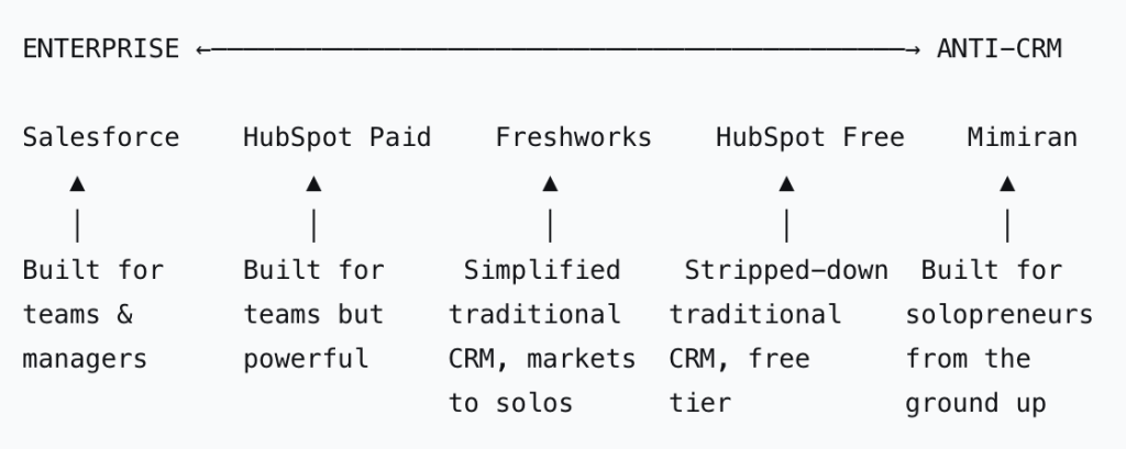 | Anti-CRM (e.g., Mimiran) | ✅ For many | Built specifically for solopreneurs. Simplicity first—no pipeline to feed. |